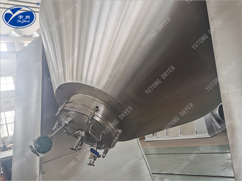 The raw material is sent to the drying tank of the drying machine by the conveying pump. At the same time, the heating medium is sent to the heating sandwich of the drying machine through the pipeline pump. The raw material obtains heat through the drying machine wall and is heated, and the water is gradually taken away under the action of the vacuum system to achieve the purpose of drying. In the near drying stage of raw materials, in order to prevent part of powder from being extracted by vacuum pump, a special bag filter is designed to collect; The organic solvent contained in the raw material is condensed by a special condenser in two stages, so that the overall recovery rate is more than 95%.