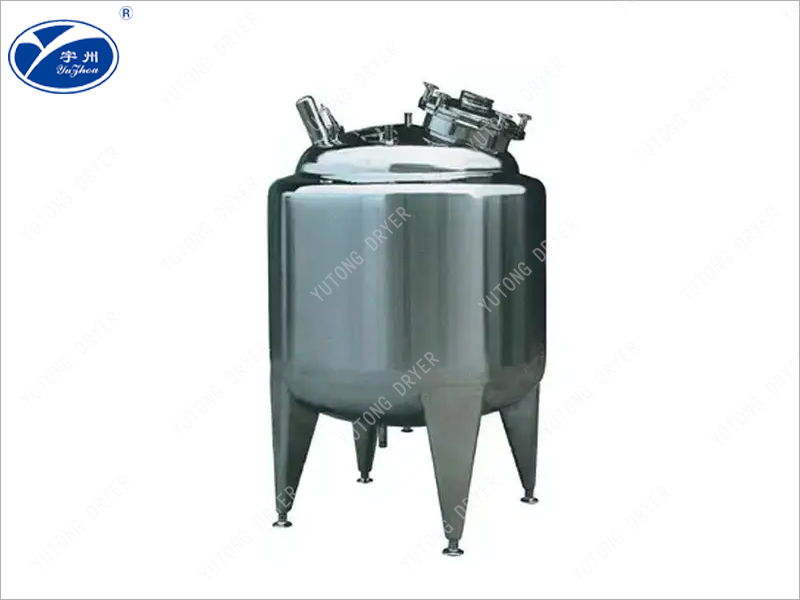 This series of containers is suitable for concentration/dilution in the pharmaceutical industry. The tank body is equipped with a sandwich layer, which can be heated, cooled, and the inner surface is polished with electrolytic mirror finish. The head (conical) is spun and processed to comply with GMP standards. The mixing device adopts sanitary mechanical seals, and the container insulation is made of polyurethane or pearl cotton. The interface adopts international standard quick release clamp type for convenience and hygiene. The crossing edge is spun and processed, and the outer surface is polished, sandblasted, frosted or cold-rolled with original color matte finish in various forms, so that the container can display its excellent quality in any field. The equipment is equipped with air breathing holes, CIP cleaning spray lights, quick opening manholes for mirror flanges, and other devices.