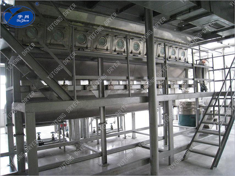 Clean hot air is distributed into the bed through the valve plate, and the wet material entering from the feeder is boiled by the hot air. Due to the extensive contact between hot air and materials, the process of heat and mass transfer is enhanced, so it can be dried in a relatively short time. If using a continuous type, the material enters from one end of the bed, undergoes boiling and drying for several seconds to minutes, and automatically flows out from the other end of the bed. This device generally operates under negative pressure.