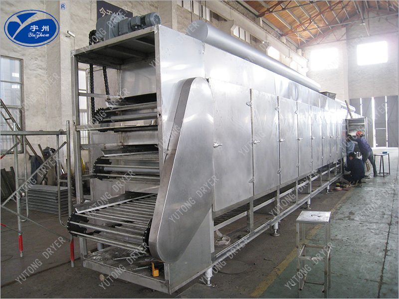 The DW series multi-layer belt dryer is a continuous drying equipment used in mass production, used for drying sheet, strip, and granular materials with good breathability. It is particularly suitable for dehydrated vegetables, catalysts, traditional Chinese medicine decoction pieces, and other materials with high moisture content and temperature requirements; This series of dryers has the advantages of fast drying speed, high evaporation intensity, and good product quality. For dehydrated cake like paste materials, they need to be granulated or made into strips before drying.