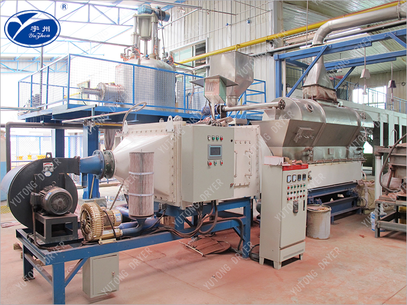 3. 由于施加振動(dòng),可使最小流化氣速降低,因而可顯著降低空氣需求量,進(jìn)而降低粉塵層夾帶,配套熱源,風(fēng)機(jī),旋風(fēng)分離器等也可相應(yīng)縮小規(guī)格,成套設(shè)備降低,節(jié)能效果明顯。可方便地依靠調(diào)整振動(dòng)參數(shù)來改變?cè)跈C(jī)內(nèi)滯留時(shí)間。其活塞流式的運(yùn)行降低了物料粒度均勻性及規(guī)則性要求,易于獲得均勻的干燥產(chǎn)品。