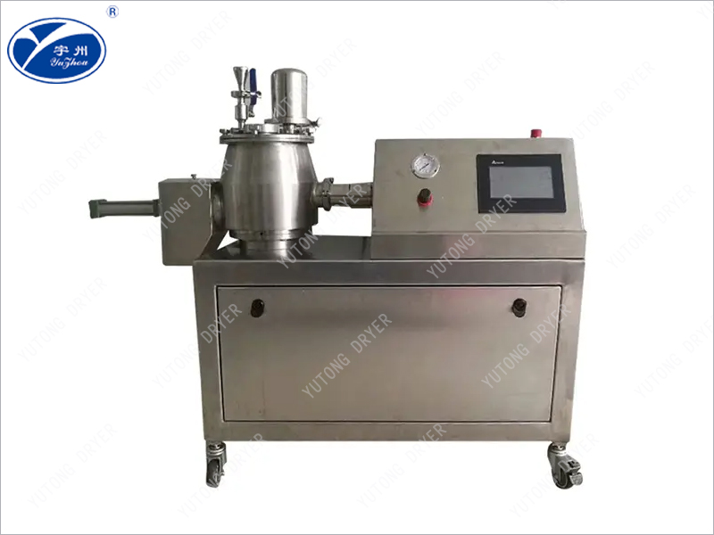 粉體物料與粘合劑在圓筒(錐形)形容器中,由底部混合漿充分混合成濕潤軟材,然后由側置的高速粉碎槳切割成均勻的濕顆粒。