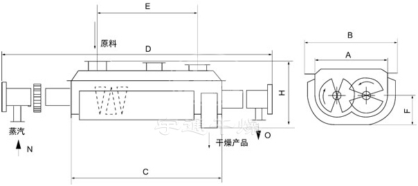 2、熱能利用率高,能耗低,裝料量可達(dá)筒體體積的70~80%,由于間接加熱,沒(méi)有大量攜帶空氣帶走熱量,干燥器外壁又設(shè)置保溫層,蒸發(fā)1kg水僅需1.2kg水蒸氣。