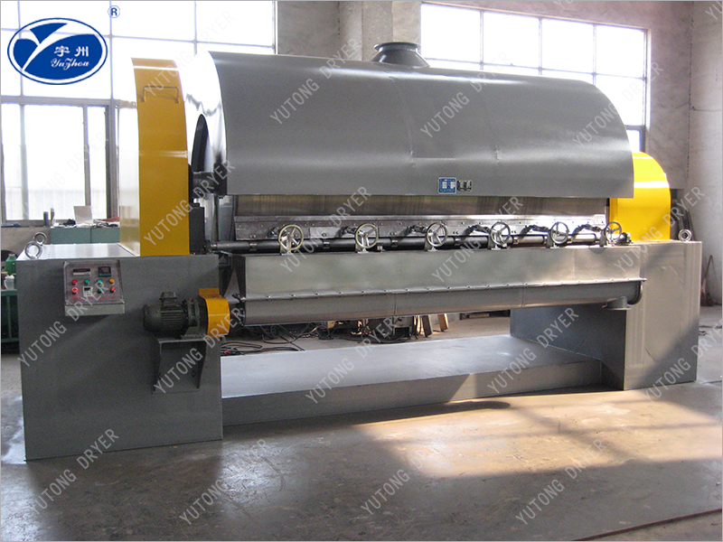 1、熱效率高。滾筒刮板干燥機傳熱機理屬熱傳導,傳熱方向在整個操作周期中保持一致,除蓋散熱和熱輻射損失外,其余熱量全都用于筒壁濕料膜的蒸發上,熱效率可達70%-80%。