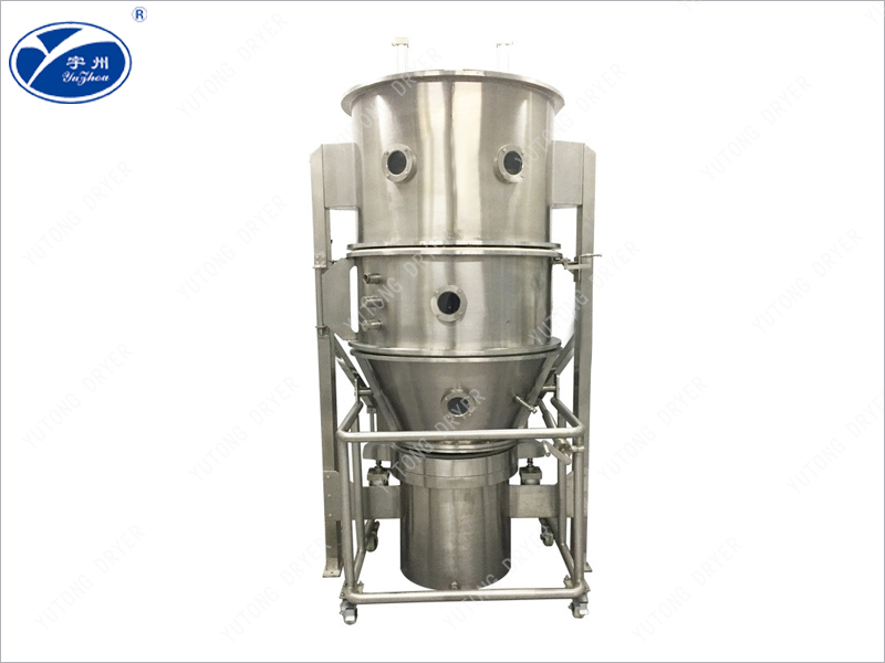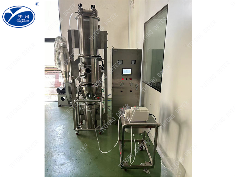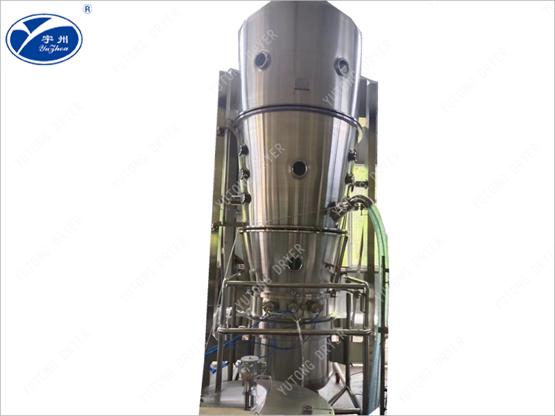物料粉末粒子,在原料容器(流化床)中呈沸騰流化狀態(tài),受到經(jīng)過(guò)凈化后的加熱空氣預(yù)熱和混合,將粘合劑溶液霧化噴入,使若干粒子聚集成含有粘合劑的團(tuán)粒,由于熱空氣對(duì)物料的不斷干燥,使團(tuán)粒中水份蒸發(fā),粘合劑凝固,此過(guò)程不斷重復(fù)進(jìn)行,形成的、均勻的多微孔球狀顆粒。